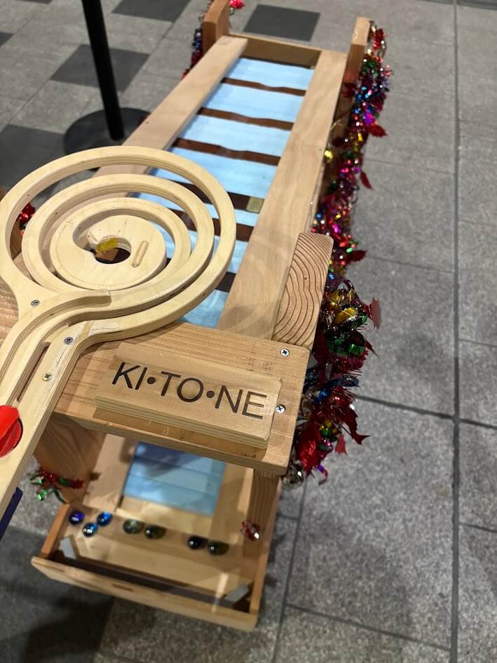 そういえば、今アーケードに出している木琴メロディーオブジェの名前を去年募って、「KI・TO・NE」に決まったのですが、名札をつけていなかったことに気づき、KI・TO・NEのネームプレートを作ってみました。