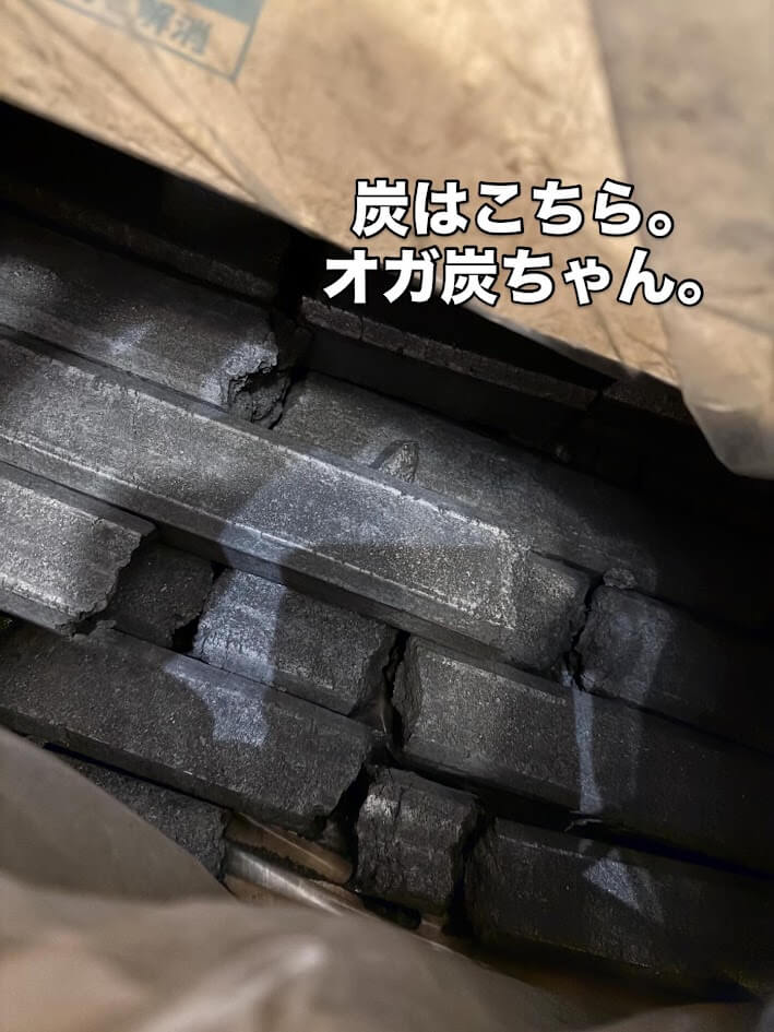 炭は愛用のオガ炭。火力もしっかりあり、なおかつ臭くない優れもの。