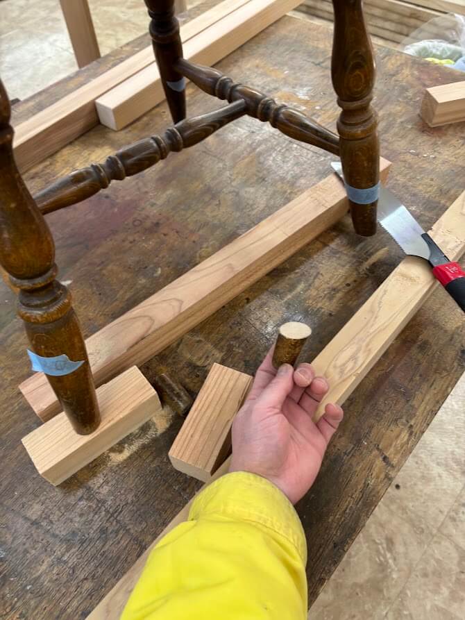 修理のご依頼いただきました。 Posted 2026-02-23 (Update 2026-02-23) 椅子の脚のカットと、グラつきの修理のご依頼をいただきました。 ありがとうございます! 脚のカットは一発勝負なので緊張しましたが、無事カット完了♪ グラつきは接着が取れている部分と、クサビが取れていることが原因だったので、新しくクサビ作って、再接着して完了! これでまた安心して使っていただけるかな♪ KITENEでは修理や製作依頼も承っておりますので、お気軽にご相談ください! 齊藤兄弟が心を込めて作業いたします! お問合せ まちなか工作室 KITENE 019-623-6311