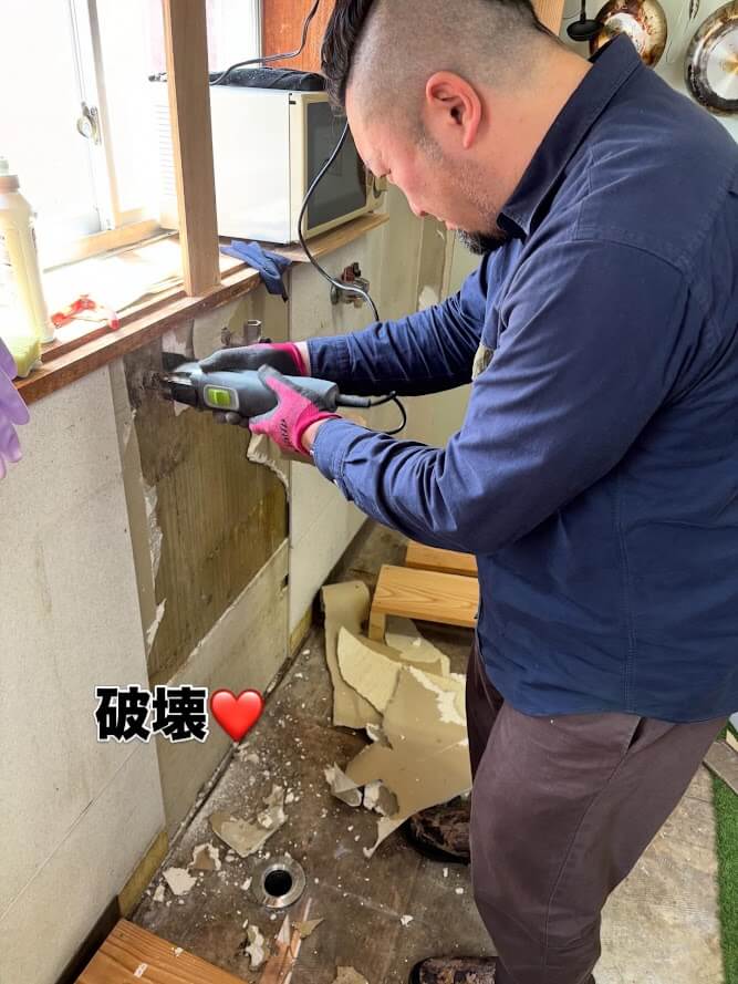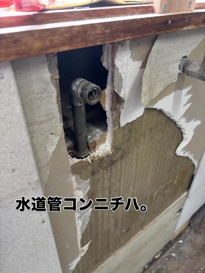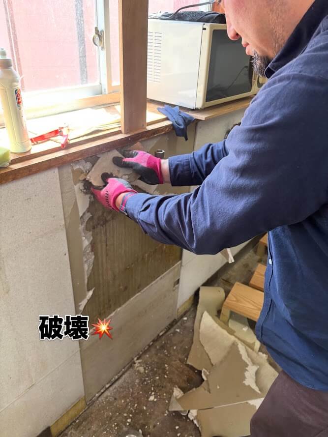 ということで、蛇口付近の壁を破壊してみました。