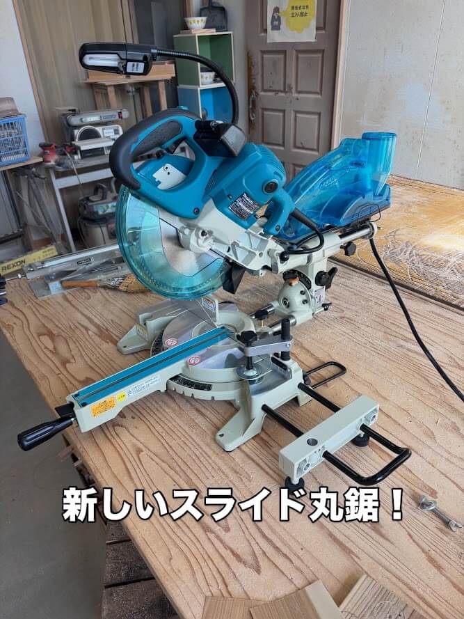 というのも、今まで使っていたスライド丸ノコの首の動きがちょっとおかしくて入院になりまして。
