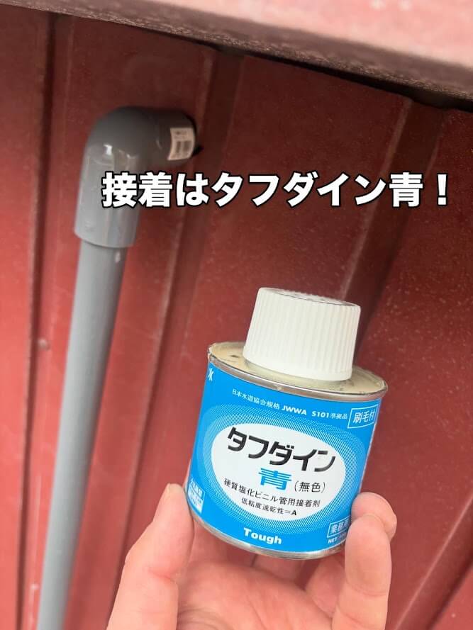 まずは塩ビ管と接続パーツ、そして接着剤(青のやつ!)を購入。