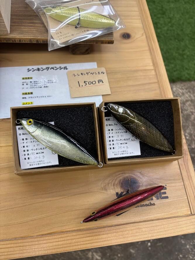 その他ルアービルダーさん手作りならではの、木目を活かしたかっこいいルアーなどもありますので、ぜひ手に取ってみてください!